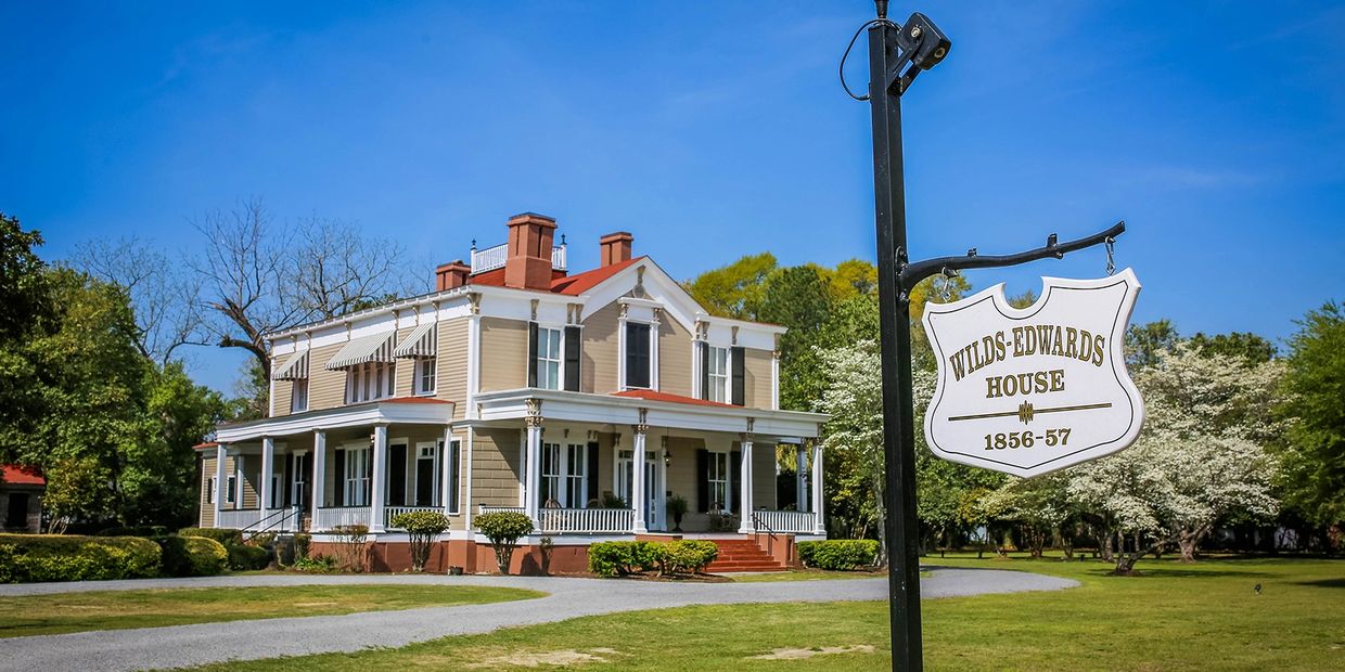 This Italianate house, designed by J.L. Clickner, was built 1856~57 for planter Samuel H. Wilds (1819~1867). According to tradition Clickner returned in early 1865 as a Union soldier and persuaded his superiors not to burn the house during a raid in the area. In 1870 attorney B.W. Edwards (1824~1890), later a state senator, acquired the house; it remained in the family until 1999.